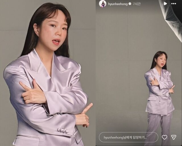 ホン・ヒョンヒは18日、自身のSNSアカウントに特に説明文なしで写真1枚を掲載した。公開された写真の中のホン・ヒョンヒは、光沢感が際立つ淡い紫色のシルクスーツを着用し、華やかでありながらも高級感のある雰囲気を演出した。