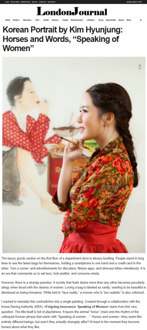 最近、ロンドンジャーナルは「キム・ヒョンジョンの韓国の肖像画:女性について語る」というタイトルの記事を通じて、キム・ヒョンジョン作家の代表作「Naesung(ナスン):女は言葉です」を詳しく紹介した。韓服という伝統的な象徴と現代的なオブジェを組み合わせ、時代的な問題意識を感覚的に表現した作家の独創的な視線に注目した。
