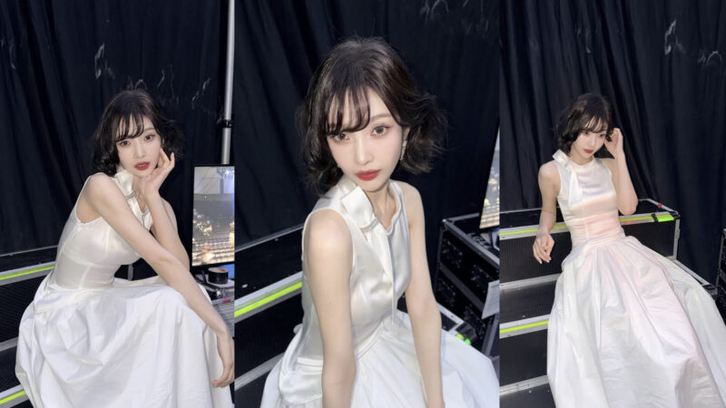 別のカットでは、ステージ機材の横に座って様々なポーズを取り、ファンに向けたときめきと余裕のある姿を同時に伝えた。