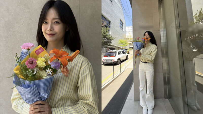 公開された写真の中でチョン・ソミンは、花束を手に明るい笑顔でカメラを見つめている。