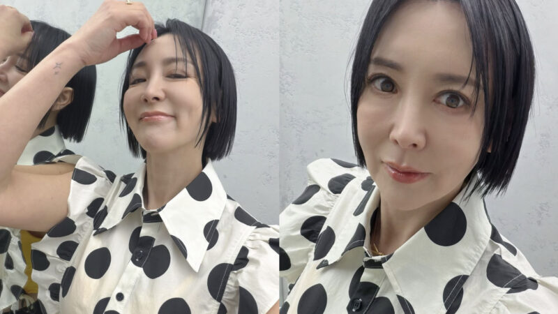 ドット柄のブラウスからカジュアルなジャケットスタイルまで自然に着こなし、特有の童顔美貌と洗練された雰囲気を同時に披露した。