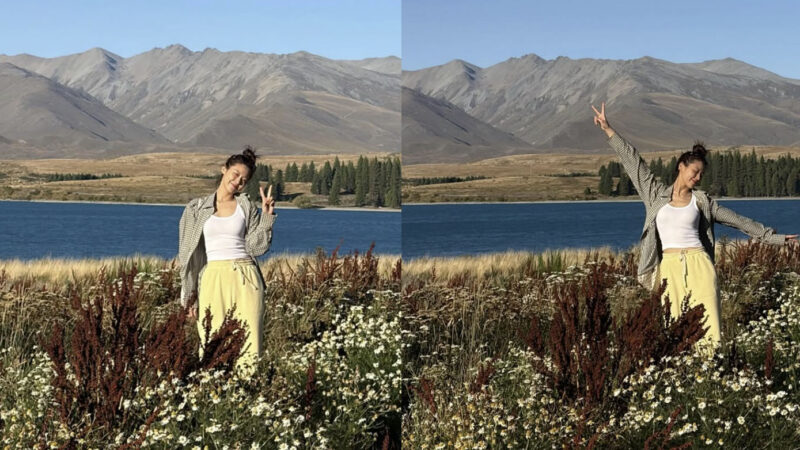 公開された写真の中のソリョンは、ニュージーランドの代表的な絶景として知られるテカポ湖(Lake Tekapo)を背景に、自然を満喫しています。