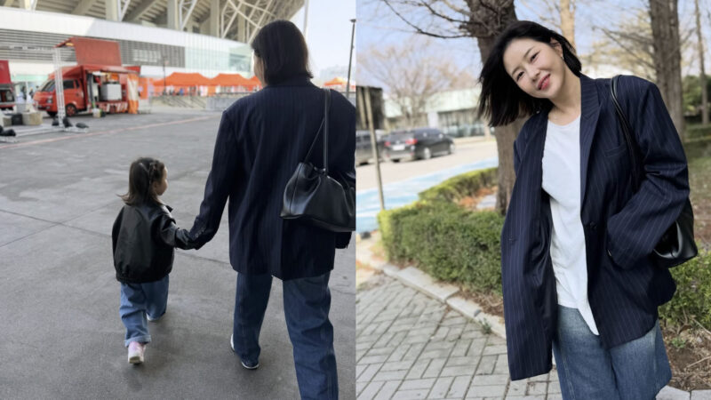 写真の中のパク・ハナは、カジュアルなジャケットとデニムパンツ姿で、姪っ子の手を握り並んで歩いている。