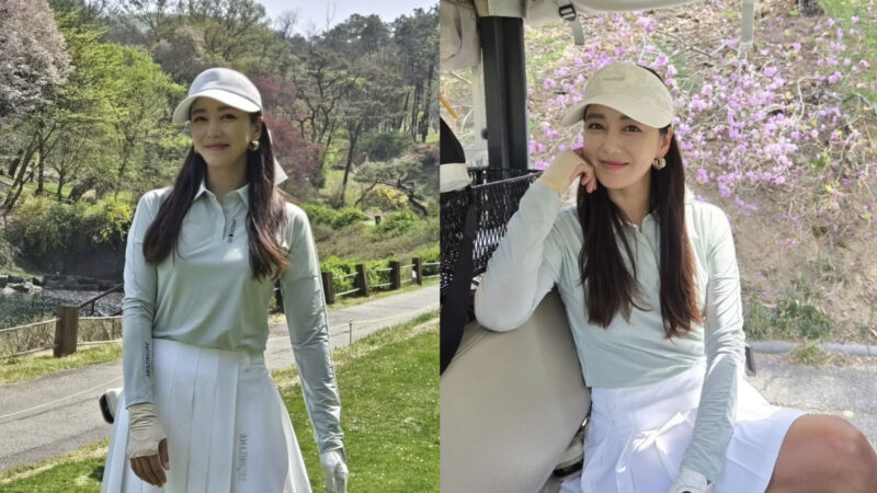 写真の中のイ・ソヨンは、淡いミントカラーのトップスにホワイトのスカートを合わせた爽やかなゴルフウェア姿で視線を集めました。