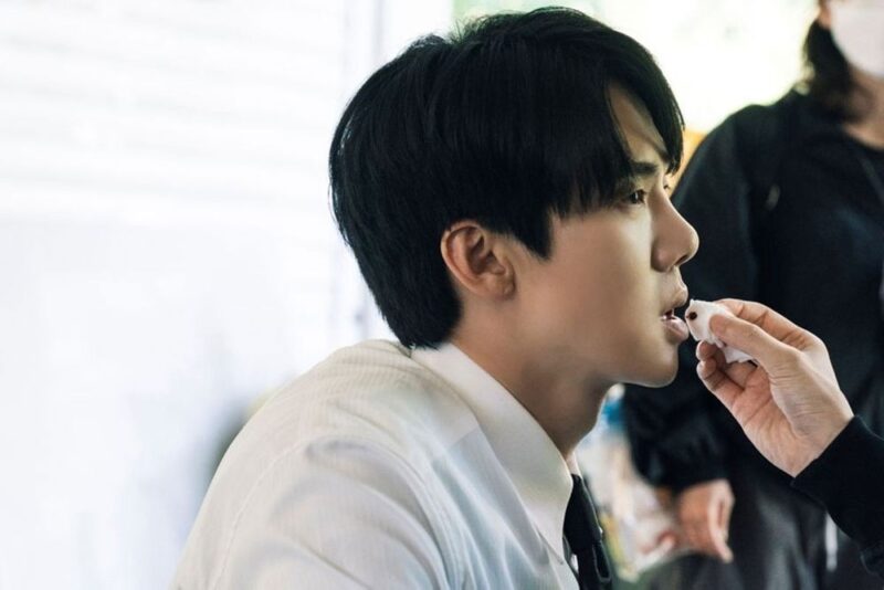 公開された写真の中でユ・ヨンソクは、状況によってまったく異なる雰囲気で視線を引きつけます。まず彼は、リラックスしたポーズで遊び場の吊り橋を楽しんでいるかと思えば、監督や俳優と台本を細かく確認しながら撮影の準備をしています。この時、ユ・ヨンソクが着用した黄色いネクタイからは、明るく純粋なエネルギーが感じられます。この日の撮影は、イランが幼い亡霊に憑依されたシーンで、彼は実際の撮影現場の雰囲気までも和やかに導いたとのことです。