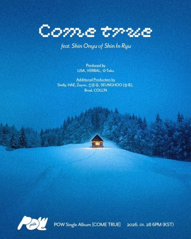 さらに、バンド「新人類」のボーカル、シン・オンユがフィーチャリングと作詞・作曲に参加し、新鮮な感性を加えた。POWならではのスタイルで再解釈された「Come True」は、世代を超えたサウンドと新たな感性を同時に表現する予定だ。