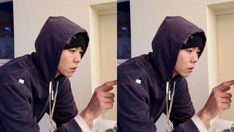 帽子もニット素材のビーニーで頭を包み、全体的に整頓されたイメージを完成させた。ディテールが過剰でないベーシックなデザインを選ぶことで、気軽に演出できます。場所は都会の路地やカフェなど日常的な空間ですが、チュウジェ特有の余裕のある雰囲気とセンスあるアイテムのマッチングで’クアンクク’な冬のファッションを披露しています。