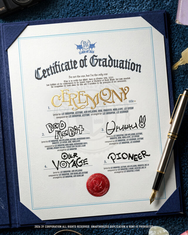 特に、メンバーの参加度が際立っている。メンバー全員がタイトル曲「CEREMONY」と収録曲「BAD HABIT」、「バニバニ」の作詞に参加し、一段と進化した音楽的才能を証明する予定だ。