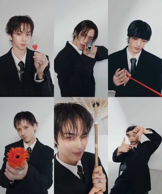 ナム・ソンモはハート型のキャンドルを吹き消す優しい姿を見せ、パク・ソクジュンは銃口がハート型になった銃を構えて強烈な印象を残しました。ユン・イェチャンはハートの矢羽がついた矢に射抜かれるウィットに富んだ動作で視線を集めました。チョ・ソンイルは恥ずかしそうな表情で赤い花を差し出し、傘の中から登場したファン・ソンビンは明るい笑顔と共にウィンクを送り、ときめきを誘いました。キム・ドギュンは指でフレームを作って視線を引きつけた後、いたずらっ子のような表情を見せ、ファンを笑顔にさせました。
