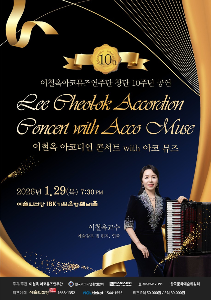 イ・チョルオク教授が率いる国内唯一の専門アコーディオン演奏団「イ・チョルオク アコミューズ演奏団」が創立10周年を迎え、今月29日午後7時30分、芸術の殿堂IBKチェンバーホールで特別公演「イ・チョルオク アコーディオンコンサート with アコミューズ」を開催する。
