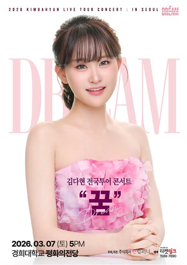 キム・ダヒョンの「夢」をテーマにした全国ツアー単独コンサートは、2026年3月にソウルを皮切りに、釜山、大邱をはじめ、日本など海外での単独コンサートも予定されており、ファンとの特別な出会いを続ける計画だ。