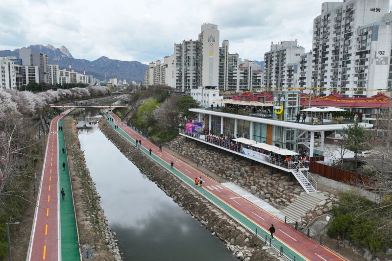 ソウル・ノウォン区の河川地図が再び描かれている。中浪川のトゥムルマル、堂峴川の堂峴マルに続き、ついに月渓洞住民の宿願であったウイ川沿いに三番目の水辺感性休憩所「ウイマル」が華やかな姿を現した。3月31日に竣工式を終え仮運営に入ったこの場所は、4月10日にカフェやラーメン調理室を含むすべての施設の正式運営を控え、すでに近隣住民の熱い関心を集めている。
