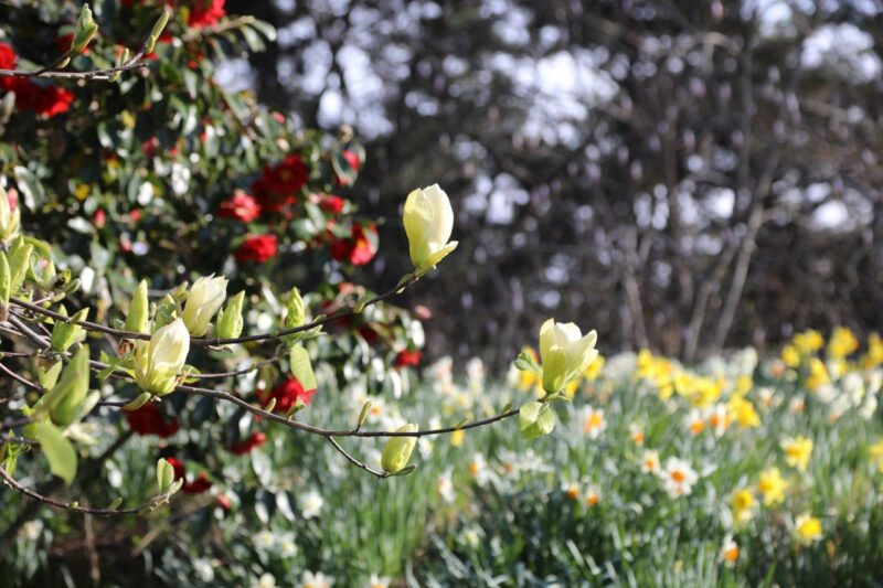 現在、千里浦樹木園では春の絶頂を告げる木蓮祭りが真っ最中です。世界中から集まった926分類群の木蓮が5月初旬まで順次開花し、訪れる人々の足を引き留めます。