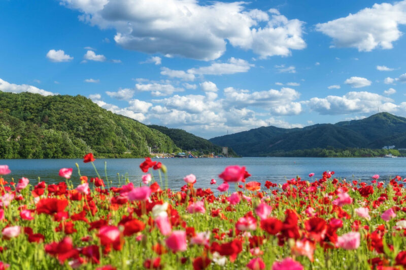 首都圏から近く、圧倒的な華やかさを誇る加平は、ご両親が最も好む春の行楽地です。特に「朝の静かな庭園(アチムゴヨスモグォン)」は、5月初旬になるとチューリップ、ツツジ、スイセンが満開となり、庭園全体が巨大な花の宮殿へと変身します。傾斜が緩やかに整備されているため、膝が不自由なご両親でもゆっくり散策しながら花の香りを楽しむのに最適な場所です。