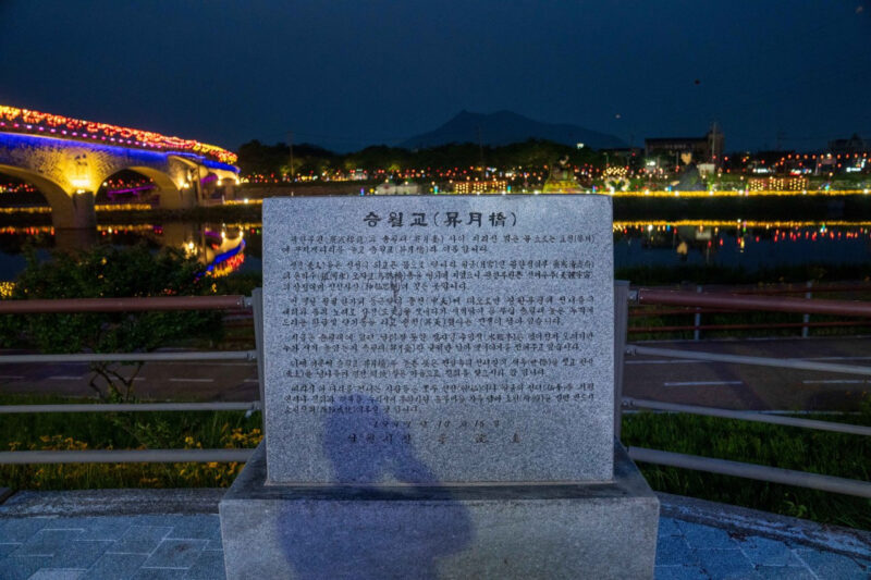 南原(ナムォン)を訪れる旅行者が真っ先に足を運ぶ場所といえば、間違いなく広寒楼苑(クァンハンルウォン)です。しかし、日が沈むと広寒楼の向かい側、蓼川(ヨチョン)を横切る華やかな光の筋に目を奪われます。こここそが、今回ご紹介する南原旅行の隠れた宝石、昇月橋です。