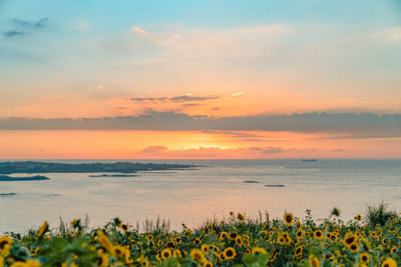 挟才海水浴場の見どころは、日暮れ時に飛揚島の向こう側が赤く染まる夕焼けです。近くの金陵(クムヌン)海水浴場と散策路でつながっているので、併せて楽しんでみてください。